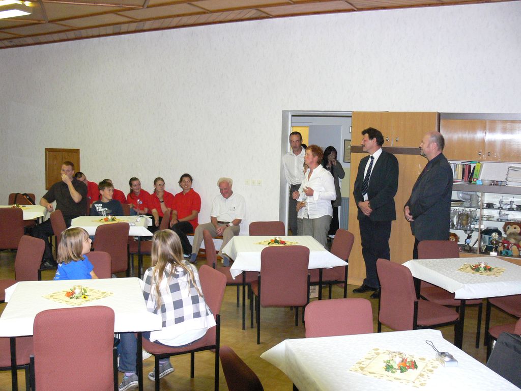 Für Karl Träger gab es aber noch eine weitere Überraschung, Pierre Müller von der Thüringer Sportjugend überbrachte die Glückwünsche des Landessportbundes Thüringen und Gregor Hänsch, Präsident des Thüringer Ruderverbandes überbrachte die Glückwünsche dieses Fachverbandes und für Karl Träger persönlich die Goldene Ehrennadel des Deutschen Ruderverbandes für 50 jährige Mitgliedschaft in einem Verein, der dem DRV angeschlossen ist. Die Ehemaligen schmiedeten Pläne und möchten im nächsten Jahr eine Untrutwanderfahrt unternehmen. Es gab noch viel zu erzählen und erst nach Mitternacht ging man nach Hause.